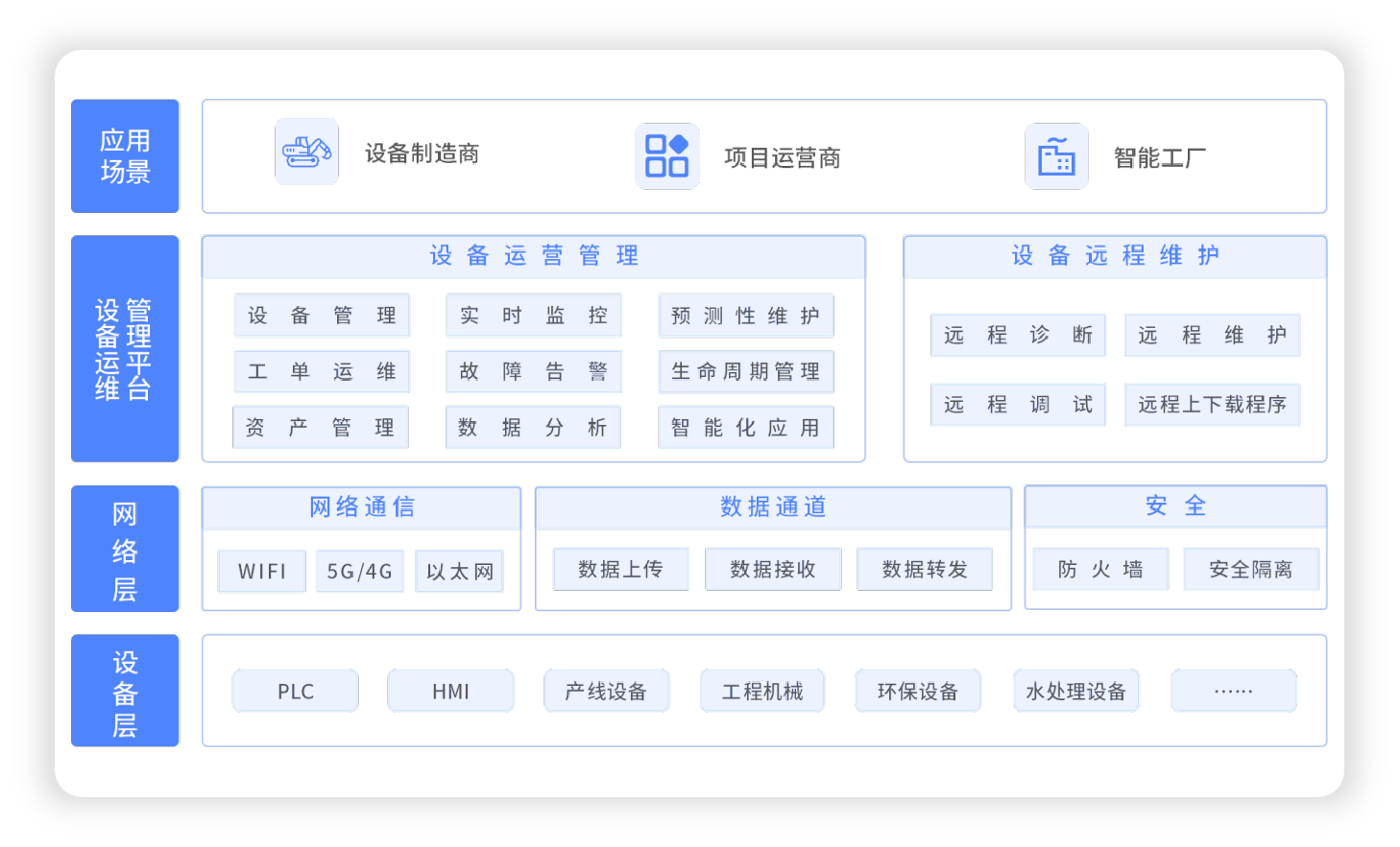傳輸層:利用GPRS、4G/5G、Wi-Fi等無線通信技術,將采集到的數據傳輸至云端部署的數之能遠程監控平臺中。