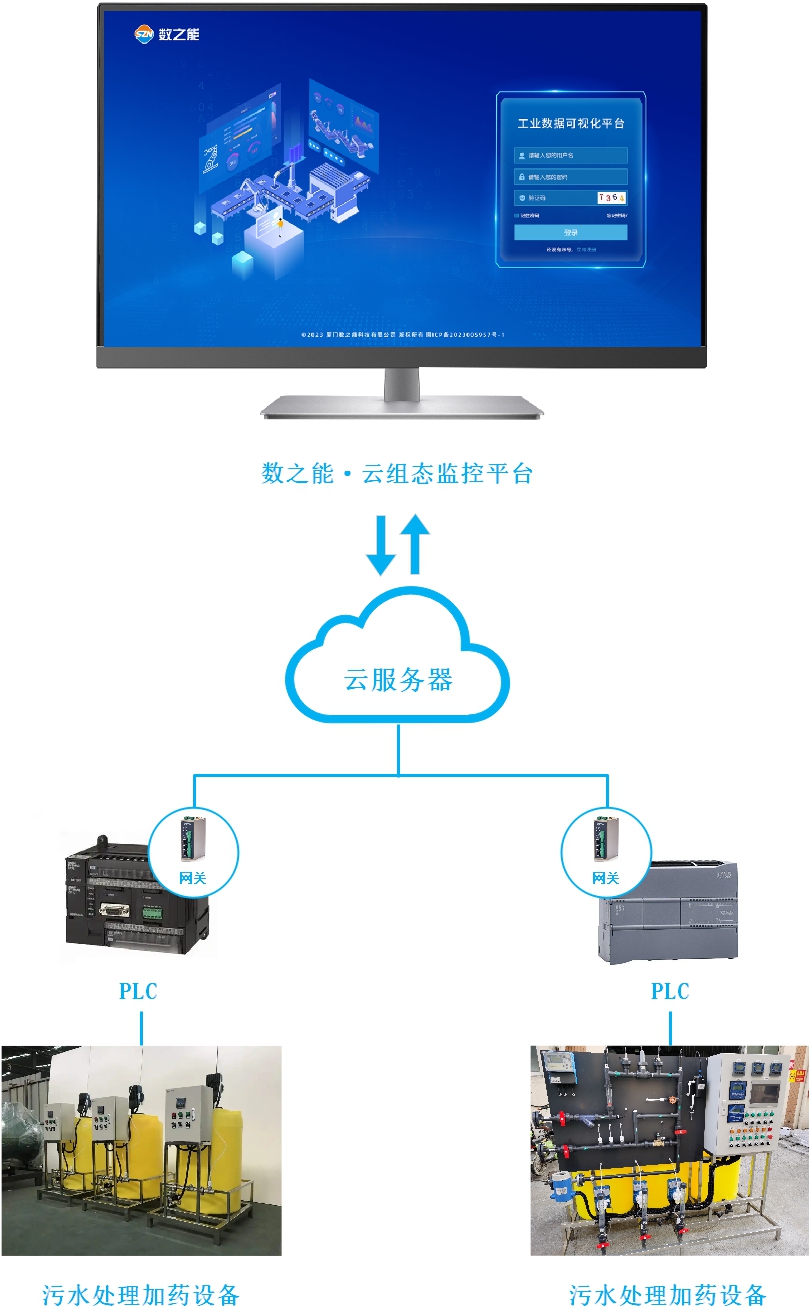 受限于本地化監(jiān)控系統(tǒng)的限制,水廠(chǎng)管理人員需要輪班值守、定時(shí)巡檢并手動(dòng)抄表,隨后再將數(shù)據(jù)錄入到水廠(chǎng)管理系統(tǒng)中,存在工作效率低、工作量大、管理成本高等問(wèn)題。對(duì)此,數(shù)之能提供基于云組態(tài)監(jiān)控平臺(tái)的解決方案,實(shí)現(xiàn)干粉配制加藥設(shè)備的數(shù)據(jù)采集與云端監(jiān)控,助力污水處理廠(chǎng)實(shí)現(xiàn)降本增效與智慧運(yùn)營(yíng)。
