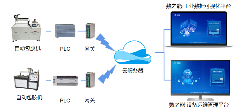 數(shù)之能設備運維管理平臺通過對設備PLC數(shù)據的實時采集、傳輸、存儲和分析,實現(xiàn)對自動包膠機的遠程監(jiān)控、故障預警、智能運維等功能,幫助企業(yè)提升設備管理水平,降低運維成本,提高生產效率。