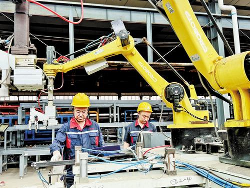 近日,河北雪龍機械制造有限公司裝配式建筑構件生產車間,工作人員正在檢查設備運行情況。