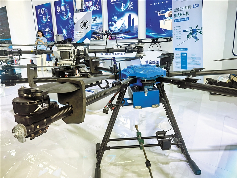 在第五屆中蒙博覽會上,內蒙古羿航科技有限公司展出自主研發的清潔無人機。 記者 康麗娜 攝