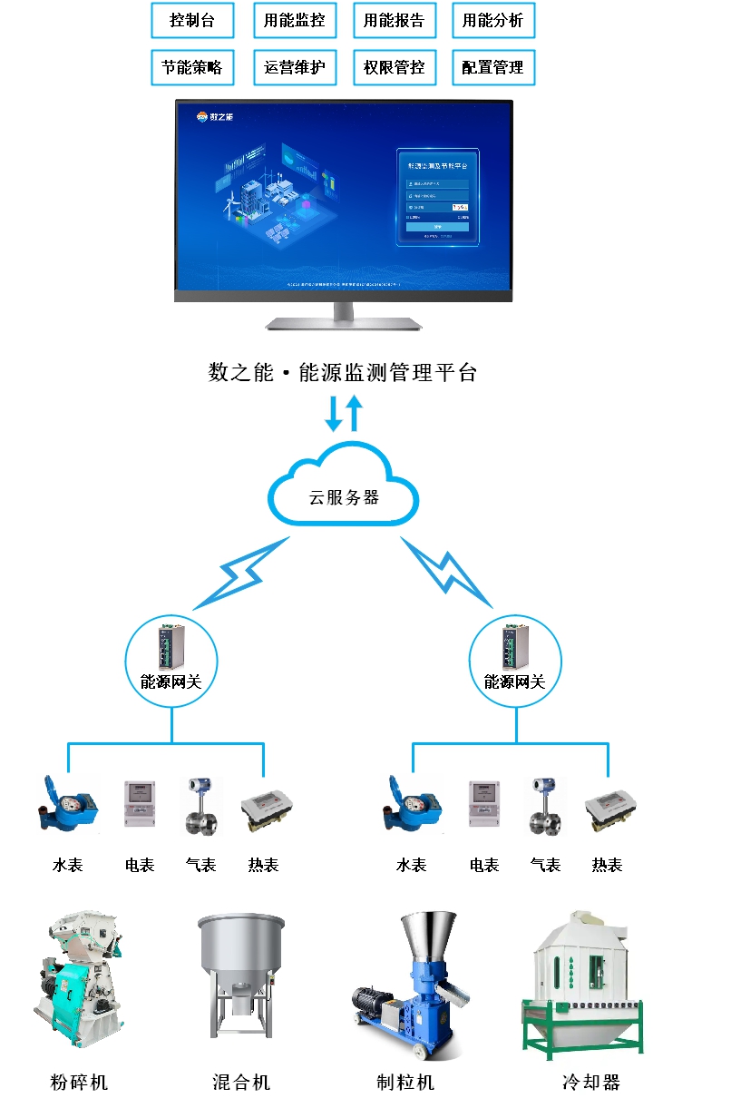 隨著國(guó)家“雙碳”目標(biāo)推進(jìn)及《“十四五” 畜牧業(yè)綠色發(fā)展規(guī)劃》要求,飼料行業(yè)需進(jìn)一步降低單位產(chǎn)品能耗,提升能源利用效率;加之原材料價(jià)格波動(dòng)頻繁、市場(chǎng)競(jìng)爭(zhēng)加劇,企業(yè)對(duì) “節(jié)能降本、精細(xì)化管理、合規(guī)監(jiān)管”的需求愈發(fā)迫切。在此背景下,借助物聯(lián)網(wǎng)手段實(shí)現(xiàn)能源監(jiān)測(cè)可視化,成為飼料廠優(yōu)化生產(chǎn)、控制成本的必然選擇。