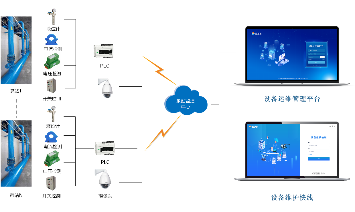 3、提供遠(yuǎn)程控制功能,實(shí)現(xiàn)對(duì)水泵、閥門等設(shè)備的遠(yuǎn)程啟停或開關(guān)操作,并提供設(shè)備維護(hù)快線,實(shí)現(xiàn)對(duì)PLC的遠(yuǎn)程編程調(diào)試和遠(yuǎn)程上下載程序等操作,提高工作效率。