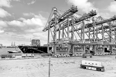 山東青島港自動化碼頭裝卸集裝箱。光明圖片/視覺中國