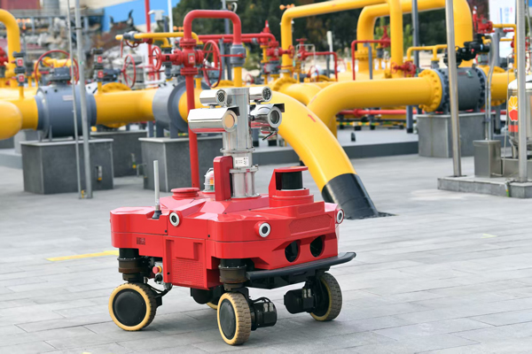 在江蘇常熟天然氣門站,一臺紅色的防爆巡檢機器人正穿梭在天然氣管道和各種儀表之間,沿著既定路線進行巡檢,實時采集設備運行參數,精準研判設備工況。