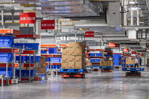 曾經,他從倉庫貨架的東邊走到西邊得180步,還必須精準控制自己的腳步,從800多種貨品中迅速找到貨單上的零食,用最熟練的手法,準確揀貨入箱。“那時每天要走4萬步,腳都走麻了。”他回憶,“現在,一年的包裹量將近三千萬個,逢促銷季,每天的出貨會瞬間超過20萬單,卻相當輕松。”