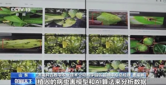 濟南科百數字農業技術公司數字園區管理中心總經理 曹耀鵬:現在可以利用攝像頭在田間自主采集大量的圖片數據,比如,我們可以通過系統內植入的病蟲害模型和AI算法來分析數據,實現對早期病蟲害的智能識別,大量減少植保管理的投入。